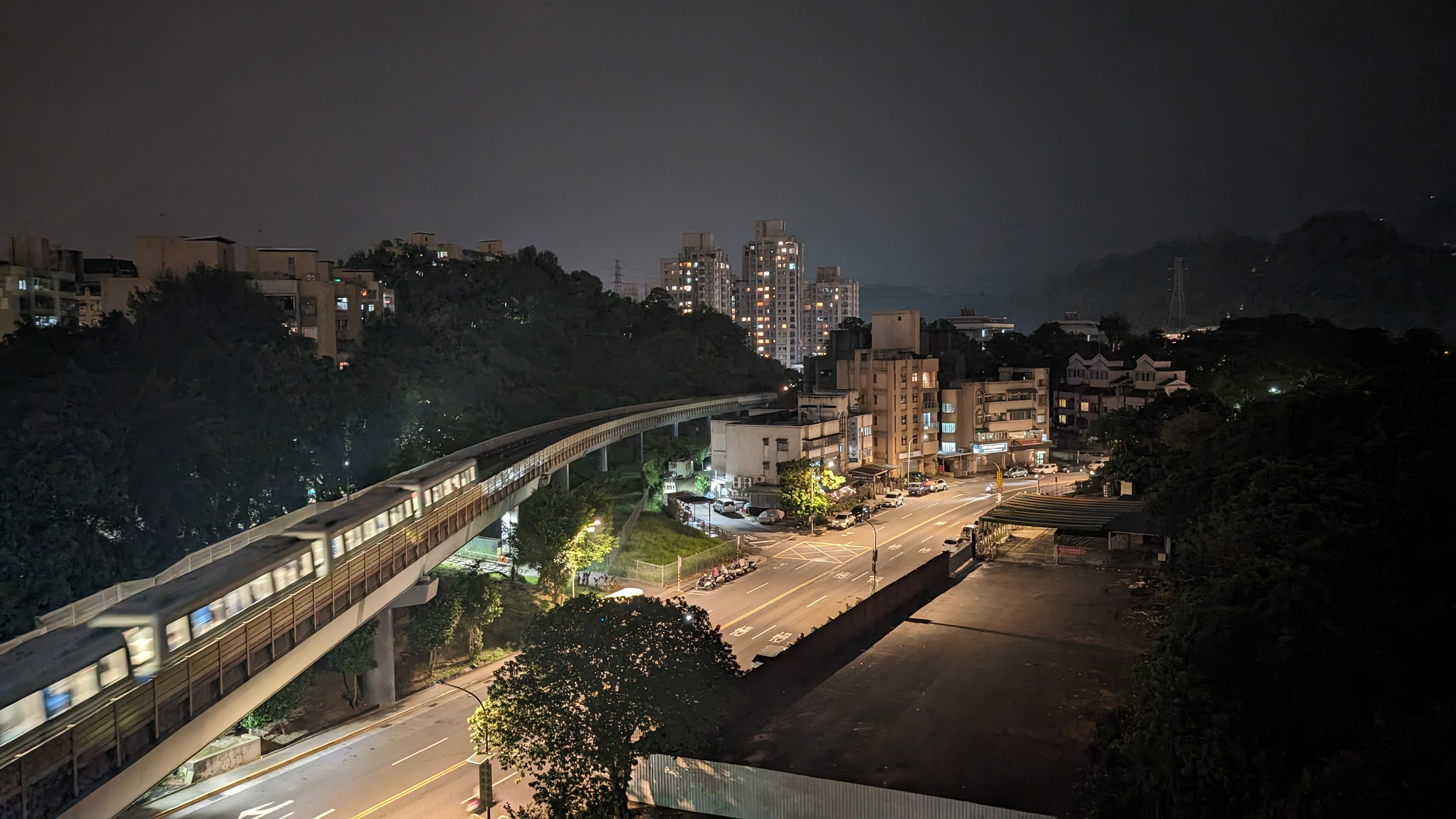 Richtig heftig wird es aber bei den 20 Uhr Aufnahmen. Schaut euch das Foto in der Mitte an… das habe ich mit Nightsight-Modus und ohne Stativ geschossen. Aber noch spannender wird es mit dem finalen Bild rechts. Die Bahn ist eine wirkliche Herausforderung fuer Kamera und Bildverarbeitungssoftware. Bewegung, dazu auch noch hell erleuchtet und das in einer dunklen Umgebung… klar, das ist nicht sensationell scharf, aber diese Bewegungsunschaerfe verleiht dem Bild eine besondere Note… es passt einfach.