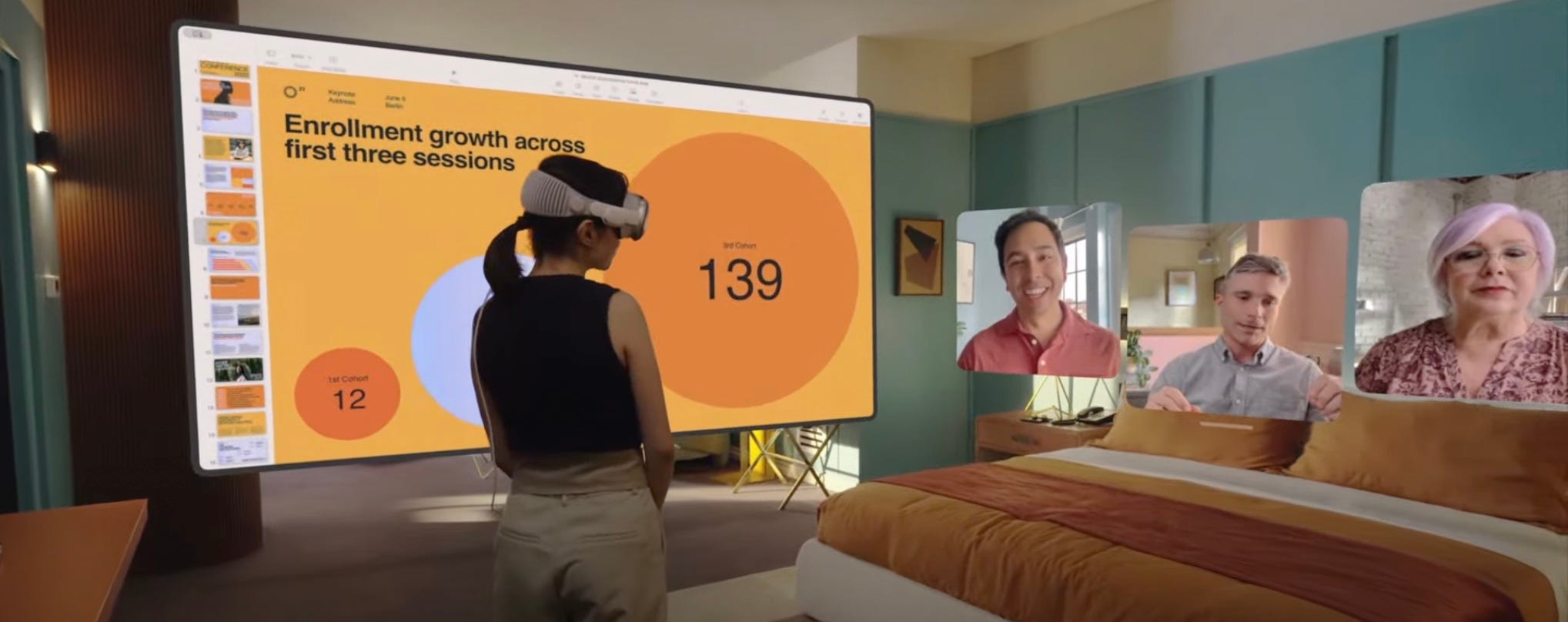 Dazu Microsoft, Zoom und Ciscos Webex… man hat hier gleich richtig einen rausgehauen, wobei mich vieles an den iPad Launch erinnert. Damals hat man massig Apps vom iPhone einfach aufgeblasen und somit einen Grundstock an Anwendungen fuers iPad geschaffen. Es hat funktioniert und ich denke, das bekommen die auch mit Vision Pro hin.