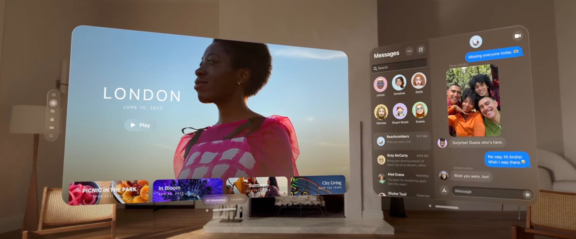 Cook sagte, dass dies das erste Apple Produkt ist auf das man nicht “drauf”, sondern durch das man durchschauen kann. Eure Umgebung sieht also wie immer aus und ihr koennt dann praktisch aus den Anwendungen Objekte drueberschieben lassen… AR halt. Hier einmal ein paar Szenarien: