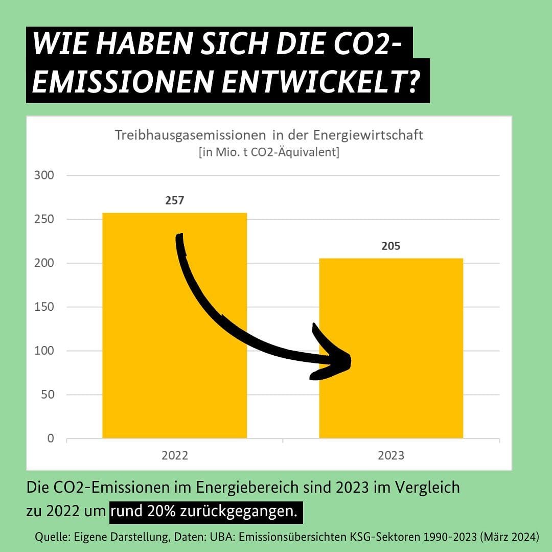 2023 erreichten die CO2-Emissionen mit 673 Millionen Tonnen den niedrigsten Wert seit sieben Jahrzehnten. Abermals, seit 1953 haben wir in Deutschland nicht mehr so wenig (hust..., denn es ist immer noch zu viel!) Treibhausgase in die Atmosphaere gepumpt. Das bedeutet uebrigens auch, dass wir diesen Wert im Vergleich zum Jahr 1990 fast halbiert (46%) haben!