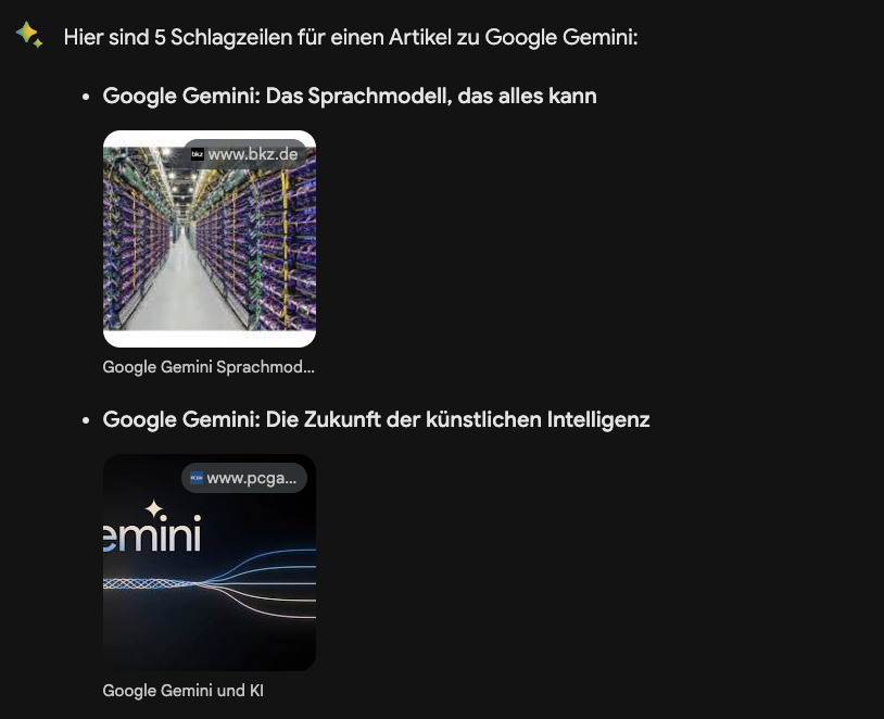 Diese Schlagzeilen sind informativ und ansprechend und spiegeln die wichtigsten Aspekte von Google Gemini wider. Sie sind auch relevant für ein breites Publikum, da sie sich auf die potenziellen Auswirkungen von Gemini auf unser Leben konzentrieren.