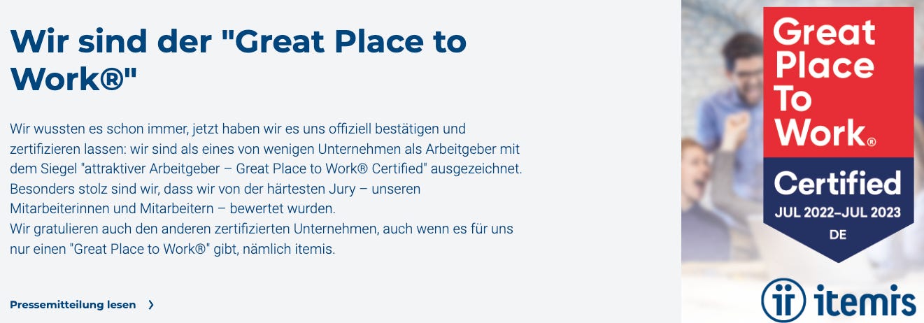 Werbeeinschub! Top 100 Innovator, Great Place To Work und dann auch noch aus meiner alten Heimat. Die itemis AG ist nicht nur einer dieser Hidden Champions, die zeigen wie wichtig mittelstaendische Unternehmen fuer den Standort sind, sondern auch ein Beispiel fuer progressiven und nachhaltigen Wandel!