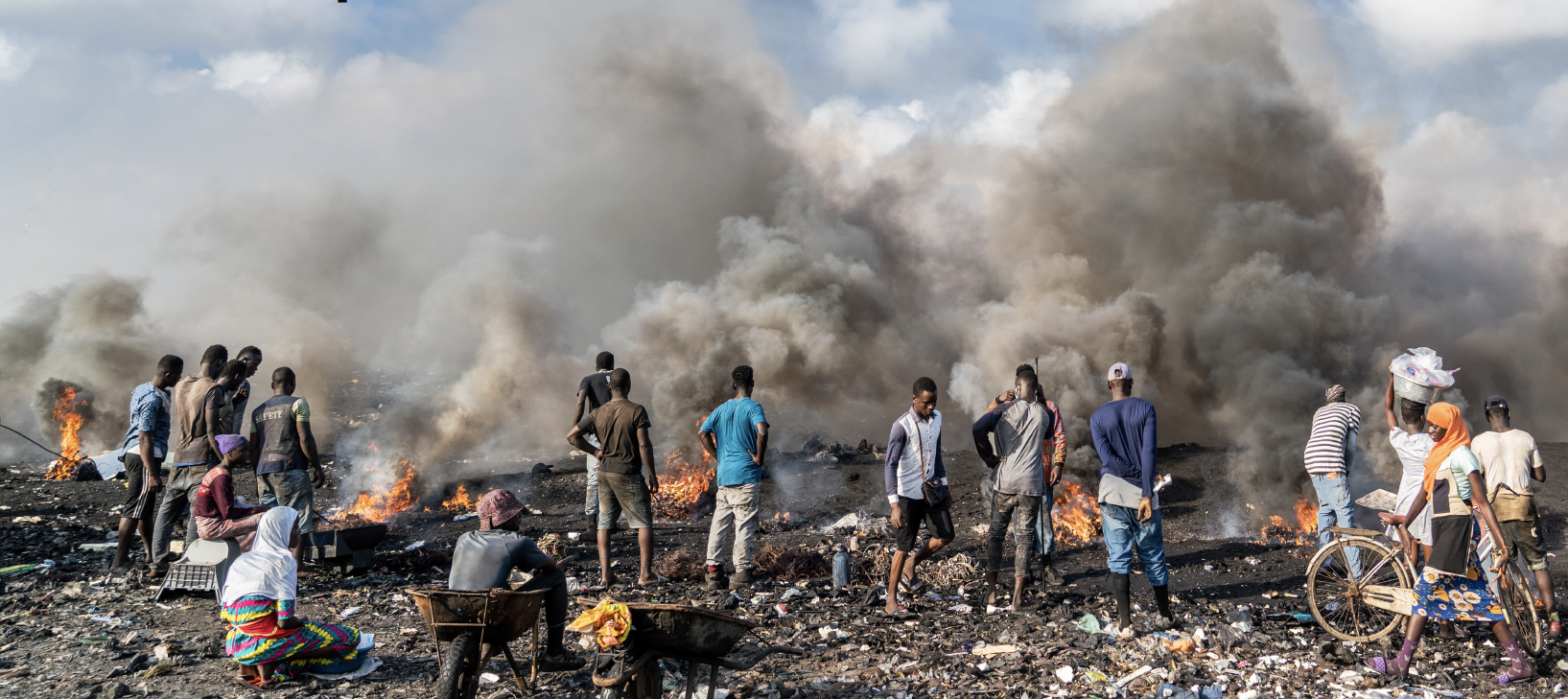 Menschen im globalen Sueden, die auf Huegeln voller Elektroschrott wandern und in selbigen noch nach verwertbaren Materialien stochern. Und all das, waehrend um sie herum Giftwolken gen Horizont ziehen, die von verbrennenden Endgeraeten stammen... all das, um an wichtige Rohmaterialien zu kommen.