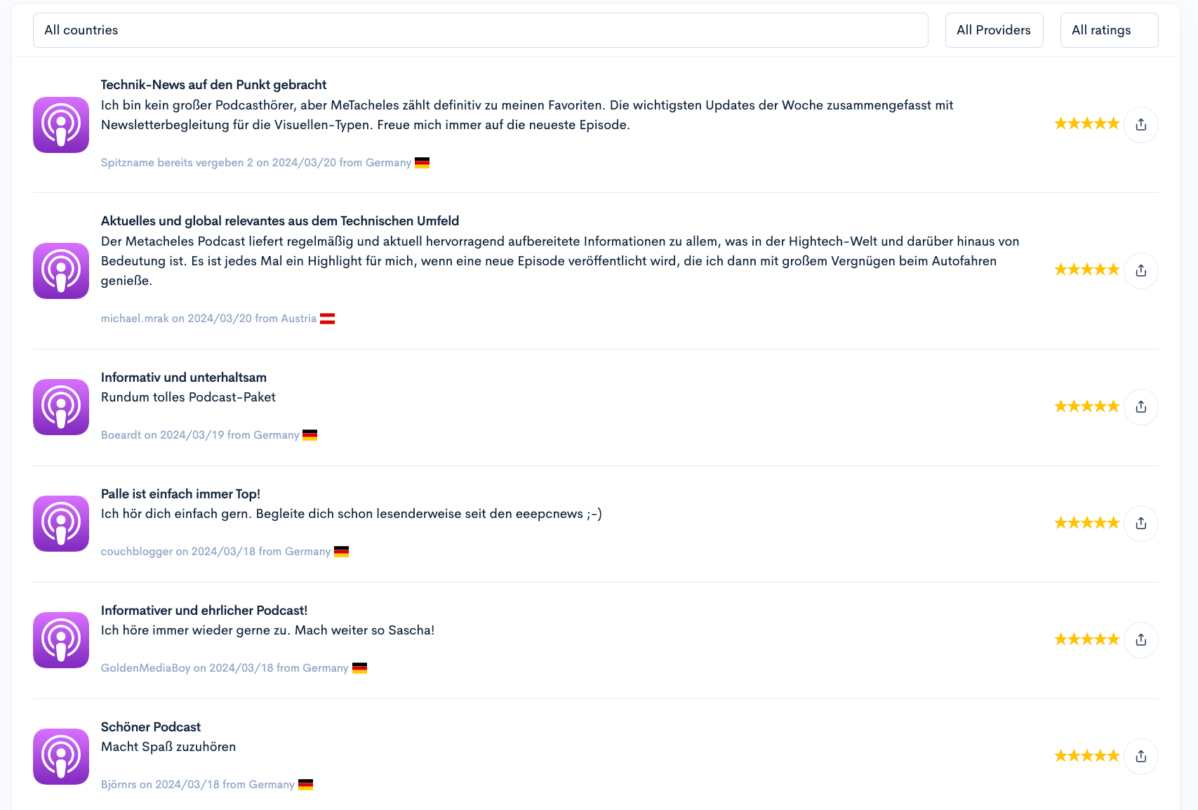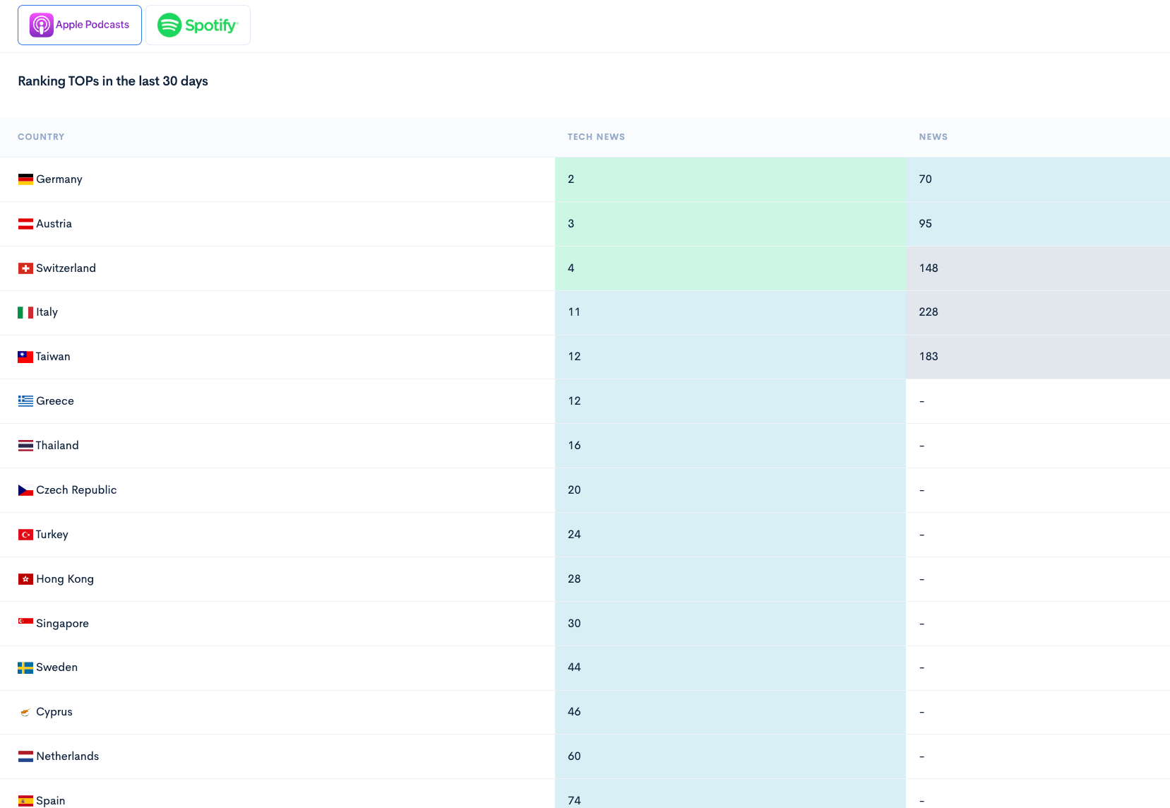- Podcast-Chartstuermer bei Apple Tech News in D, AT & CH