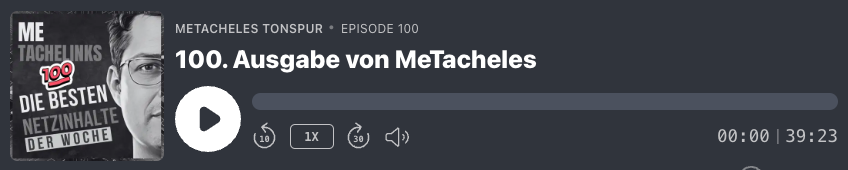 So schnell geht das. In etwas mehr als 2 Jahren sind nun 100 Ausgaben MeTacheles zusammengekommen. Zeit einen kleinen Rueck- und Ausblick zu wagen... und ja, es gibt natuerlich noch die besten Netzinhalte der Woche!