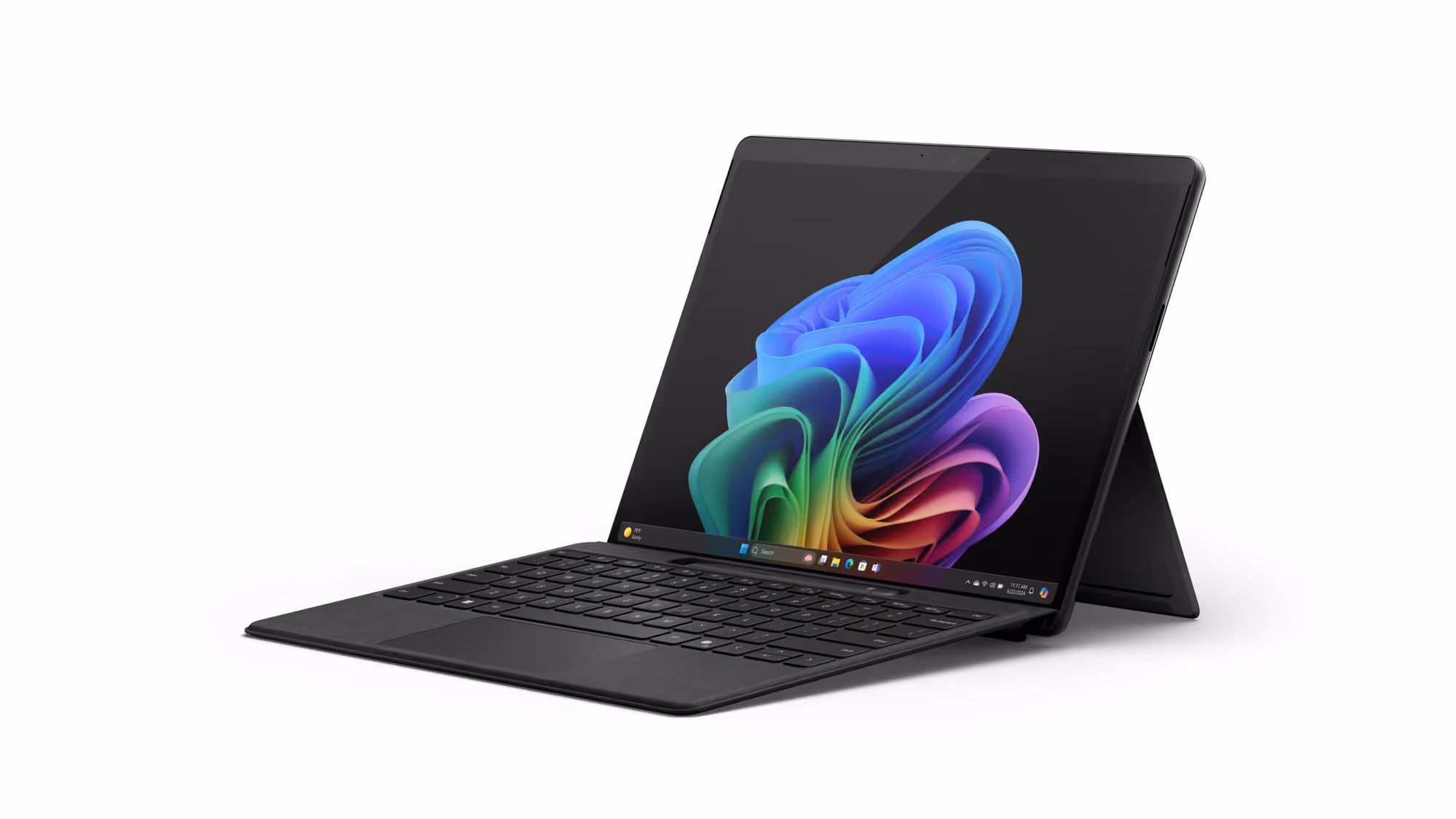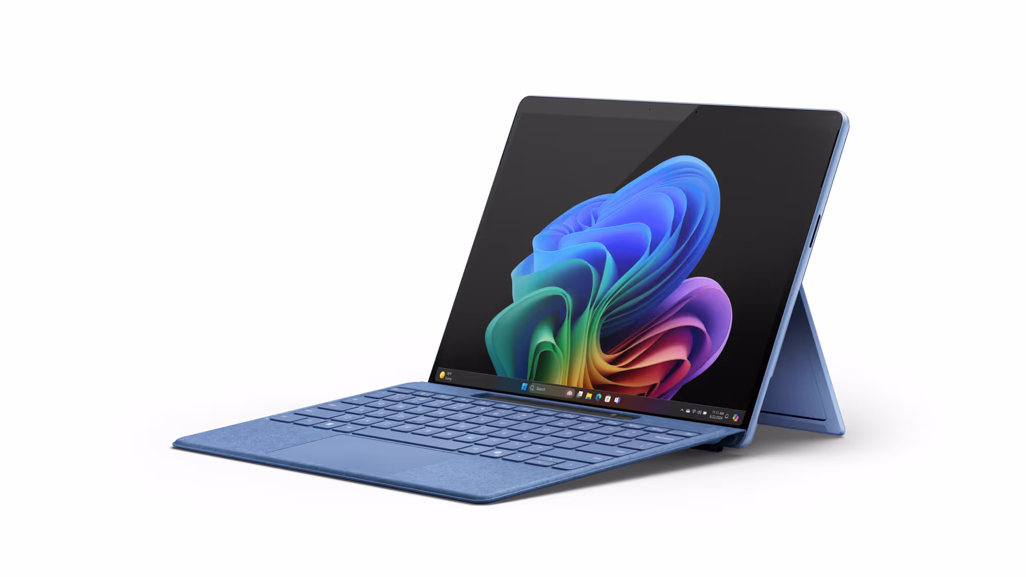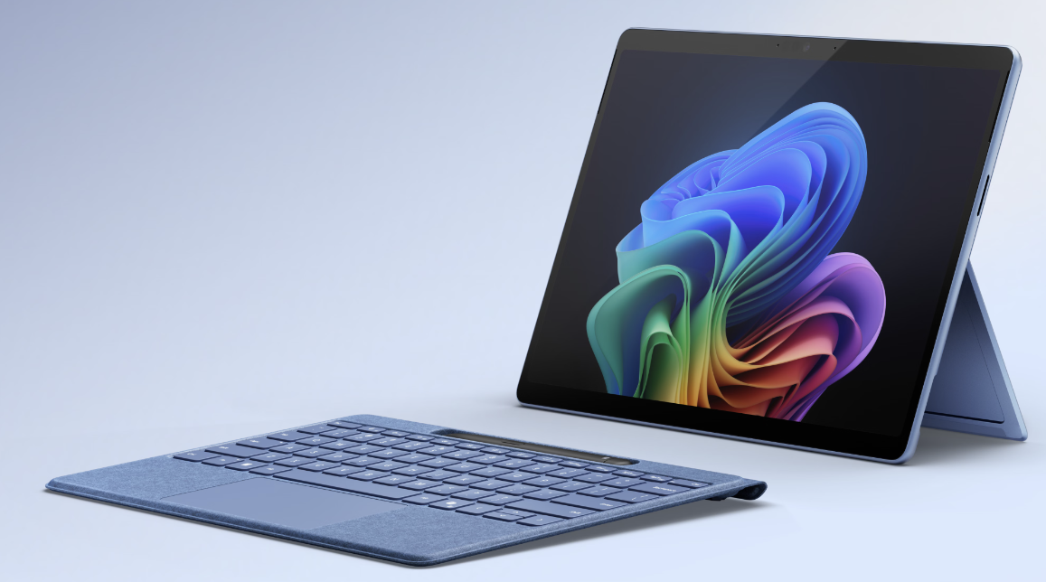 Das Surface Pro behaelt das bekannte Design bei, hat jedoch neue Farboptionen wie Saphirblau und "Sand-Duene". Auch hier kommt der leistungsstarke Snapdragon X Chip zum Einsatz, und die Akkulaufzeit soll den ganzen Tag ueber halten. Das Display ist nun in LCD- oder OLED-Optionen verfuegbar, wobei der OLED-Bildschirm eine herausragende Farbdarstellung bieten duerfte.