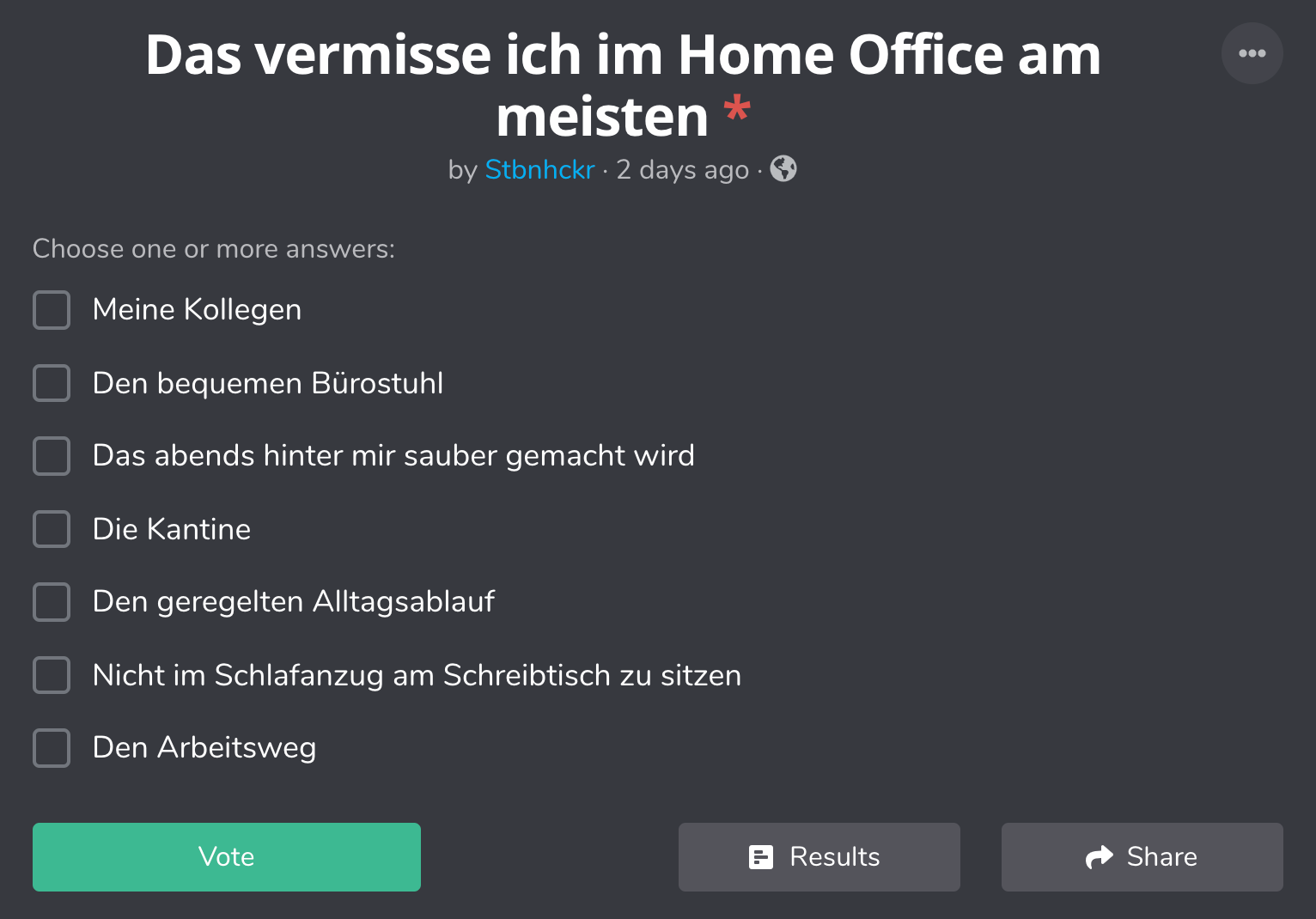 Frage der Woche: Was vermisst Ihr im Home Office am meisten?