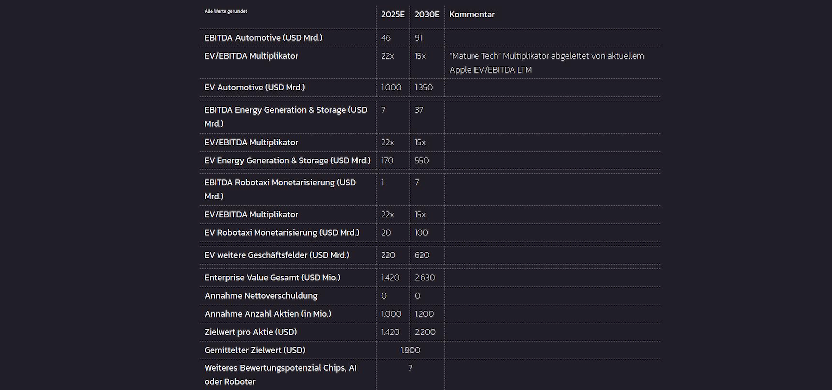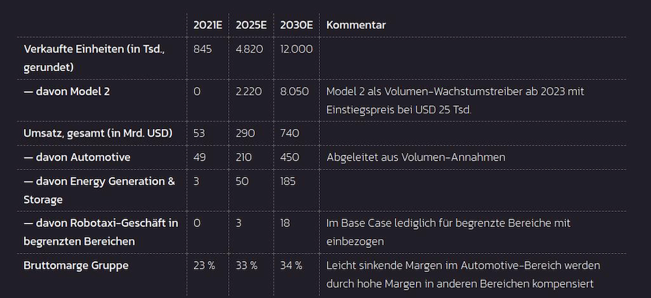 Und hier komme ich noch einmal auf die Vorhersagen aus dem Jahre 2021 zurueck. In diesem Jahr hat Tesla eine knappe Million Fahrzeuge produziert. Um Thelens Vorhersage, die er aktiv fuer die Bewerbung seines Fond nutzte, eintreffen zu lassen, haette Tesla in 4 seine Produktion um fast 4 Millionen Einheiten erhoehen muessen. Das sind 8 Produktionsstaetten mit den Kapazitaeten der Fab in Gruenheide, die das Unternehmen in 4 Jahren haette aus dem Boden stampfen muessen!
