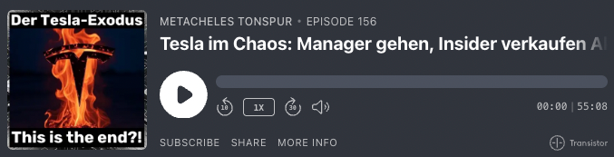 Tesla ist nicht am Ende. Noch nicht. Aber das Narrativ, das Tesla gross gemacht hat, ist es. Die Geschichte vom ewigen Innovator, vom disruptiven Unternehmen, das immer einen Schritt voraus ist – sie passt nicht mehr zur Realitaet und ich finde, dass ich dies im letzten Jahr ganz nuechtern auf den Punkt gebracht habe. Wohlgemerkt bevor Musk sich politisch engagierte: