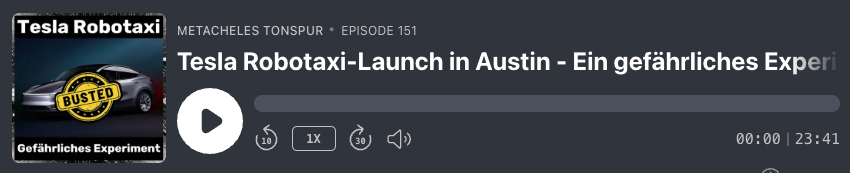 Und damit nicht genug. Natuerlich sitzt jemand im Auto. Kein Fahrer – offiziell. Sondern eine Person auf dem Beifahrersitz. Die im Notfall eingreifen kann. Plus: Ein Teleoperator, der das Fahrzeug aus der Ferne ueberwacht und ggf. uebernimmt. Nennt man das Robo Taxi? Oder ist das einfach ein verkleidetes Level-2-Fahrzeug mit PR-Schminke? Zumal Musk ja in einem Tesla Financial Call angekuendigt hat, dass man im Juni "unsupervised" Robotaxis auf die Strasse bringen wird. Also ohne Sicherheitsfahrer und Co. - Hat nicht wirklich geklappt!