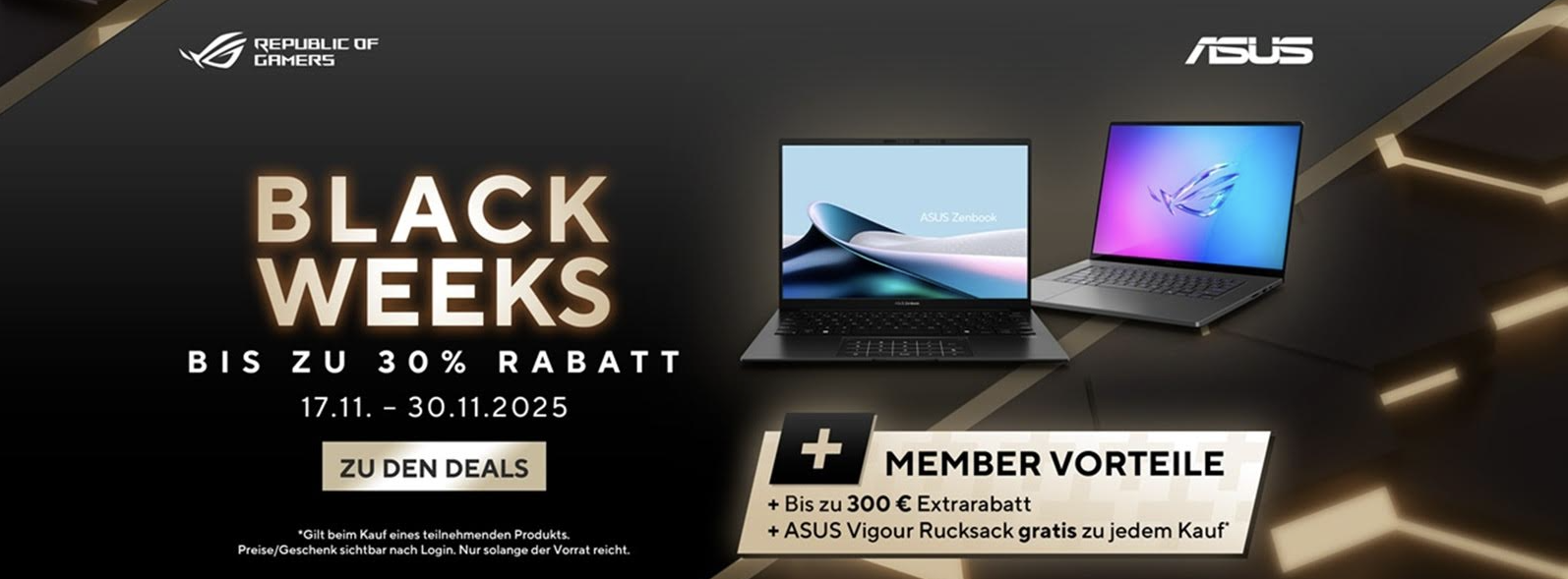 Werbeeinschub: Mein Sponsor ASUS bietet jetzt nicht nur 3 Jahre internationale Garantie an, sondern hat auch entsprechende Black Friday Deals am Start. Bis zu 300 Euro Rabatt, nen Rucksack und... natuerlich noch einen MeTacheles-Bonus. Mit dem Code MeTacheles50 bekommt ihr noch einmal 50 Euro Nachlass. >> HIER << geht es zu den Angeboten!