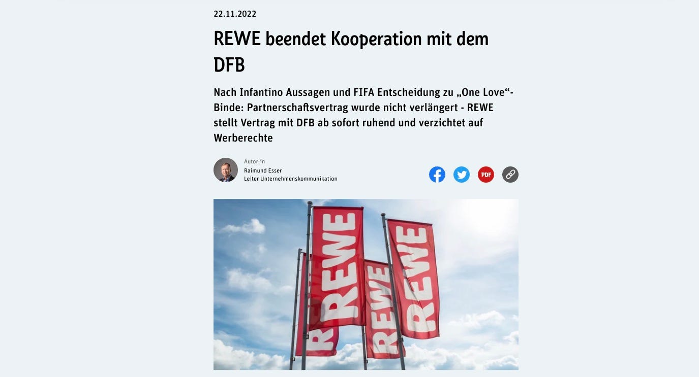 Final haben da uebrigens alle gewonnen, denn das REWE Logo auf der Sponsorenwand wurde nun, man glaubt es kaum, durch das One Love Logo ersetzt.