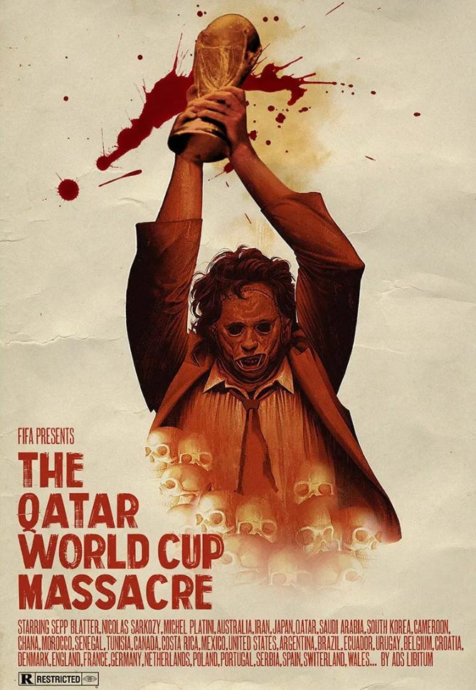 Der Instagram Account Ads Libitum bring mit einem einzigen Fake Filmplakat all das auf den Punkt, was ich ueber die FIFA und die aktuelle WM denke! Immerhin bin ich mir sicher, dass wir aehnliches nicht noch einmal erleben werden. Diese Weltmeisterschaft duerfte als einer der groessten PR Fails aller Zeiten (nicht nur) in die Geschichte des Sports eingehen!